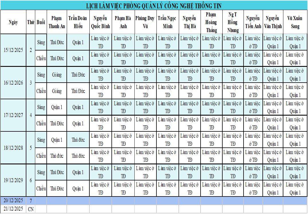 Từ ngày 15/128/2025 đến ngày 21/12/2025
